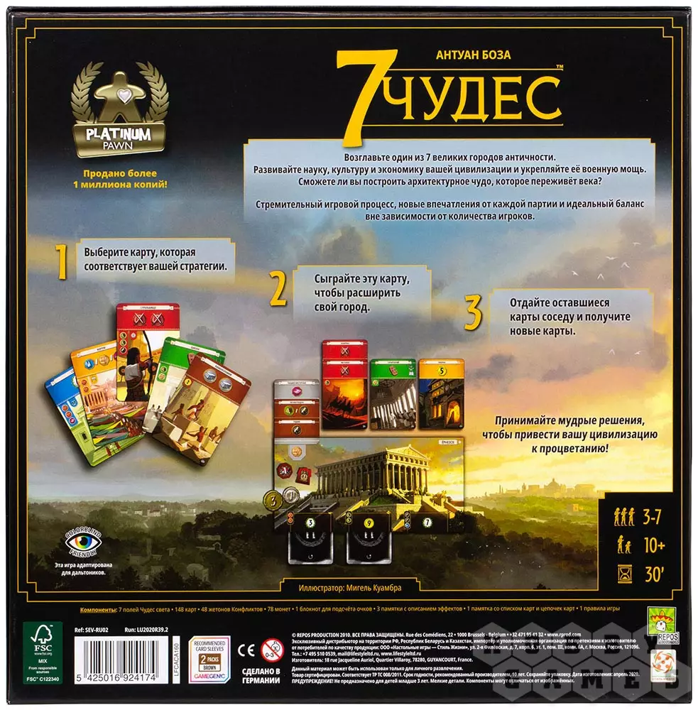 Эгоист20.01.2021 13:18Лучшая вещь, в которую я когда либо играл (с учетом всех дополнений конечно). Но это касается предыдущего издания. Что сказать о переиздании 2020. Очень неожиданно, учитывая что относительно недавно вышло дополнение Армада к предыдущему изданию, а тут сразу переиздание. Брал в подарок. В целом это старые добрые 7 чудес с небольшими изменениями. В переиздании отсутствуют 7 карт Чудес света, мелочь конечно незначительная, но всё же.