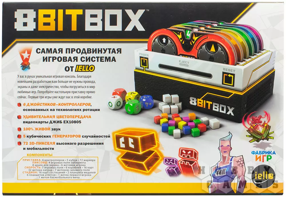 Хотите попробовать сыграть в приставку как в настольную игру? Теперь это стало возможно благодаря "8Bit Box" – первой настолке, вдохновленной легендарной механикой и духом восьмибитных игр. Внутри коробки вас ждут 3 настольных аналога ретро-видеоигр, а также комплект джойстиков, благодаря которым вы сможете попробовать разные забавы в компании друзей.