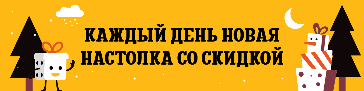 Каждый день с 12 по 31 декабря мы вместе с вами будем открывать новое "окошко" адвент-календаря, чтобы у вас была возможность приобрести настольные игры по специальной цене. Но спешите, скидка будет действовать ровно сутки, и каждый день акция будет обновляться! Не упустите шанс подхватить настолки, которые станут настоящими хитами вашего новогоднего праздника!