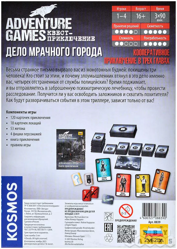 "Дело мрачного города" – это кооперативная игра, в которой каждая из трёх глав – это новый виток в паутине обмана и предательства. Как в классических компьютерных квестах, вы будете блуждать по тёмным улицам, искать улики, которые не хотят быть найденными, и разгадывать загадки. Колоритные персонажи со своими тайнами будут то помогать, то мешать вам. Что откроется вам в эту дождливую ночь, когда секреты города спрятаны за пеленой тумана? Сможете ли вы докопаться до истины, или станете ещё одной жертвой этого мрачного места?