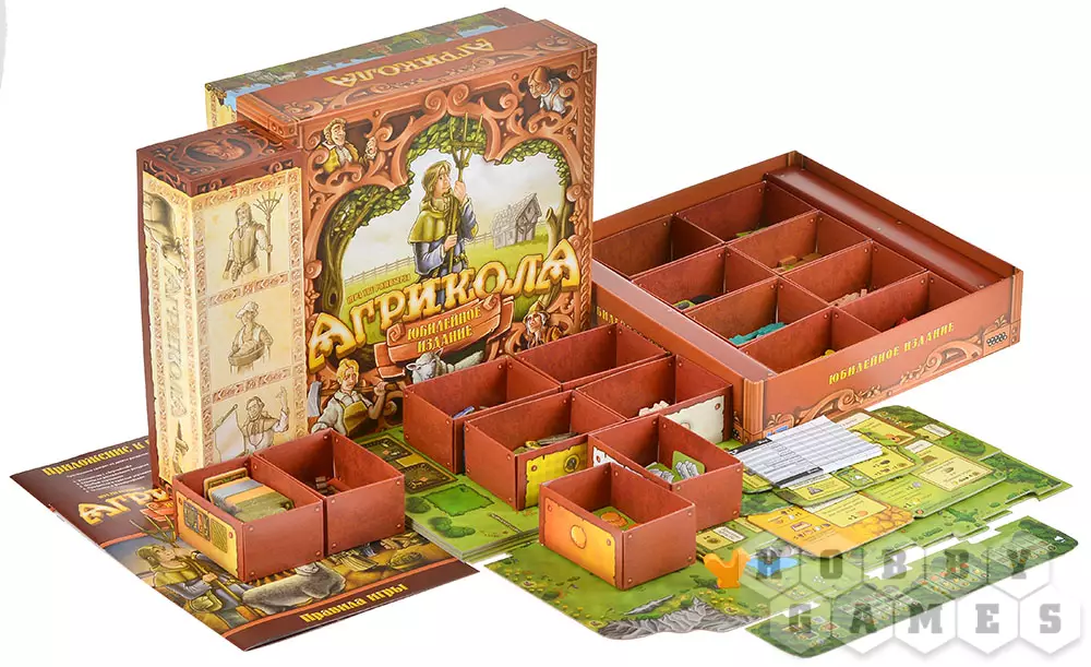 В состав этого издания входит большой комплект дополнений, включая мини-дополнение "Времена года", изначально появившееся благодаря фанатам и затем доработанное авторами оригинальной коробки. Вы найдёте множество деревянных фишек, десятки новых карт профессий и действий, а также дополнительные игровые модули с мистическими существами и даже создателями игры! Всё это организовано в продуманную систему хранения, которая вместит как компоненты этого набора, так и будущие дополнения. Это – самое полное и богатое издание "Агриколы", которое подарит вам сотни часов новых открытий и стратегических решений.