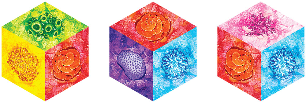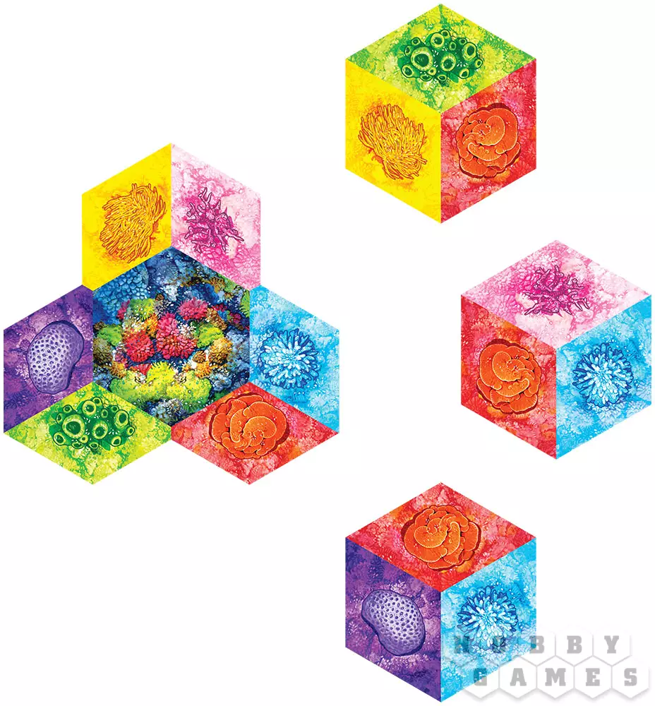 Создать места обитания и рифы – если три коралла одного цвета образуют идеальный шестиугольник, вы создали место обитания. Немедленно разместите на нём маленькое морское животное соответствующего цвета. Если же вы соединили четыре и более кораллов одного цвета в протяжённую группу, но не образовали шестиугольник – вы создали риф