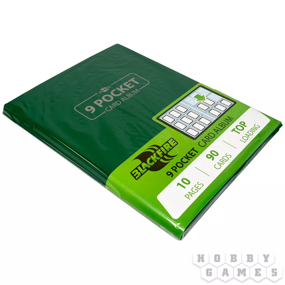 Защитите Ваши карты от внешних воздействий! В этом альбоме зелёного цвета десять встроенных листов, по девять кармашков с верхней загрузкой карт на каждом. Всего в альбоме помещается 90 карт при одинарной загрузке или же 180 карт при двойной. Листы сделаны из прочного материала, не царапающего карты. А твёрдая обложка защитит как Ваши карты, так и сам альбом.
