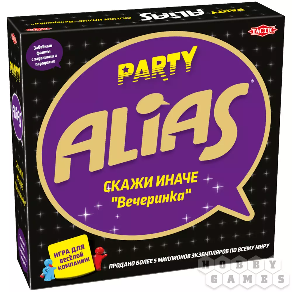 Данный вариант адаптирован для вечеринок и тусовок. В этой игре, так же как и в прочих играх серии, необходимо при помощи подсказок изобразить необходимое слово товарищу по команде (подсказки – слова-синонимы и другое). В отличие от прочих игр серии, в Alias Party придётся объясняться новыми, необычными и невероятными способами, если фишка команды попадает в поле Party ("Вечеринка"). Тут будьте готовы, что придется не только объяснять слова а, к примеру, рассказать анекдот, в котором есть слова из карточки, объяснить слово вприпрыжку либо в необычной позе. Также может выпасть задание объяснять слова в разных эмоциональных состояниях – счастливом, злом, истерическом. Эта игра выявит способности каждого объяснить, призовет к креативности и активности.