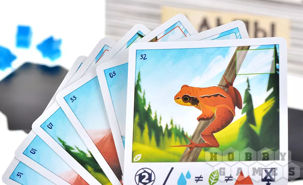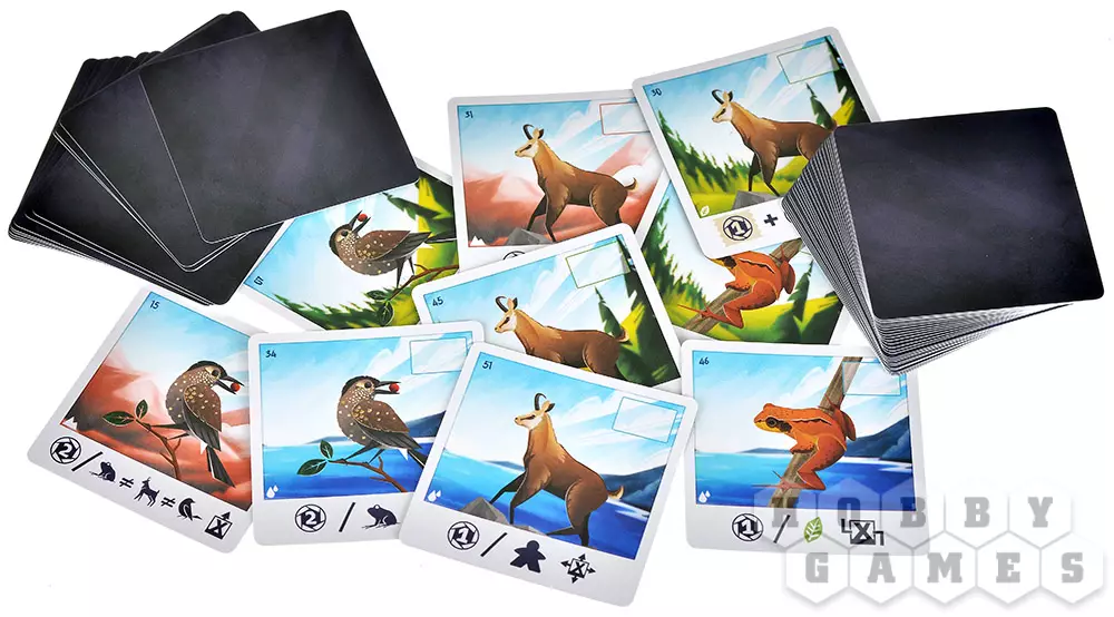 Вы будете получать очки в зависимости от того, какие животные и ландшафты изображены на картах. Так, снимки с кедровок приносят ПО за животных, серны – за фигурки игроков, а травяные лягушки – за ландшафты. На некоторых картах есть дополнительные условия: выполнив их, сможете получить ещё больше очков. Именно поэтому важно грамотно выбирать место для фигурки.