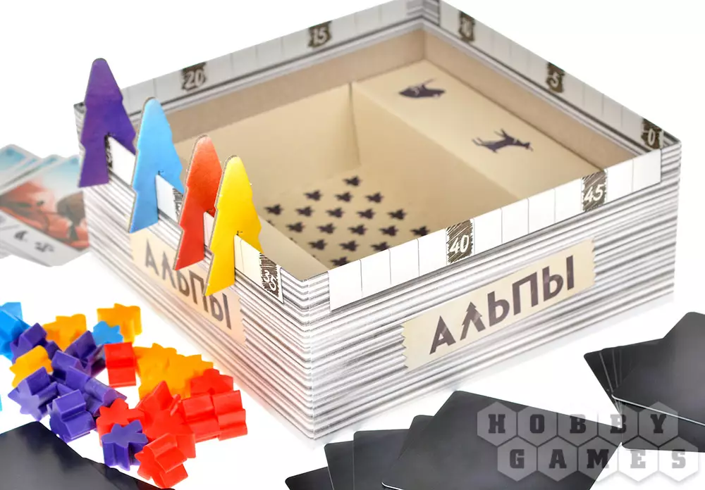 "Альпы" – это уютная семейная игра, в которой вы один или с компанией отправляетесь на фотоохоту в Швейцарский национальный парк. Ваша цель – собрать самый атмосферный альбом снимков дикой природы. Каждый ход вы будете разыгрывать карты, чтобы сделать удачный кадр и разместить его на страницах общего альбома.