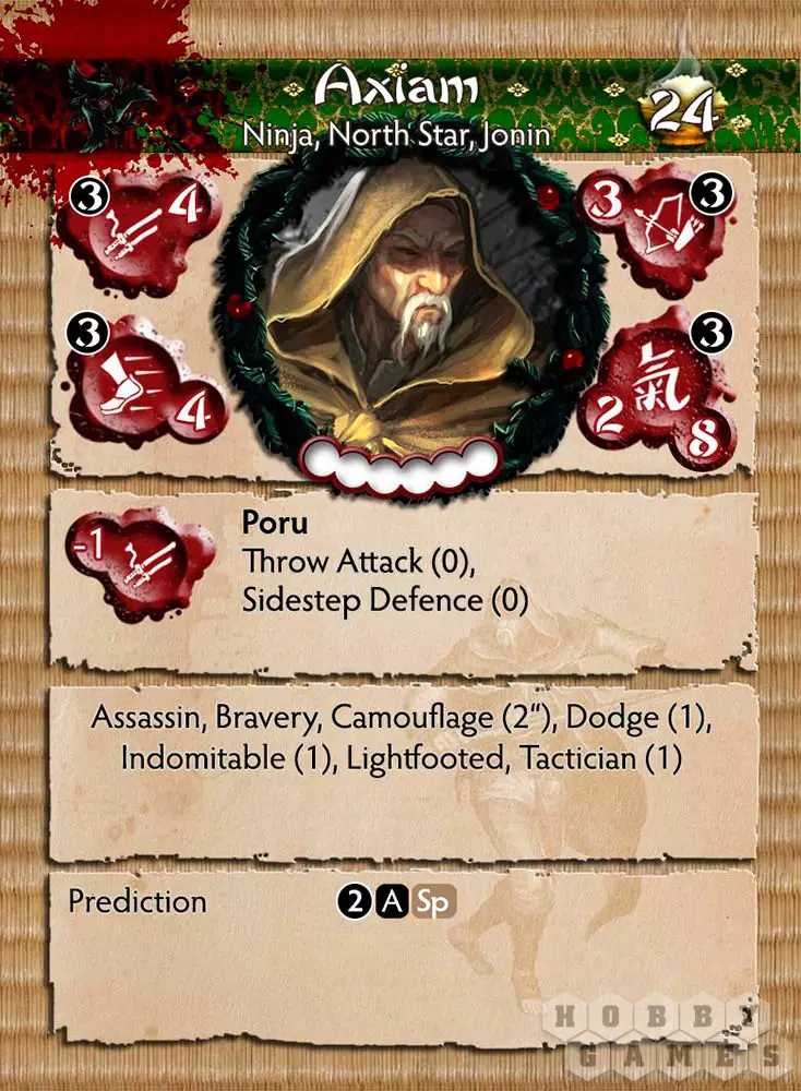 Axiam – Jonin или High Man из клана Shadow Wind. Он оказался сильнее Shadow Crows и теперь учит тех, кто готовится стать ниндзя North Star Ninja. Тем не менее некоторые миссии должны контролироваться более опытными людьми, и Axiam показывает, почему он достоин обучать следующее поколение своим потрясающим навыкам. В игре Axiam обладает высоким уровнем навыков ближнего боя, что редко встречается среди ниндзя, и является единственным персонажем North Star, имеющим такие высокие базовые характеристики. Его диапазон способностей не имеет себе равных, поскольку он может использовать любой навык North Star Ninja.