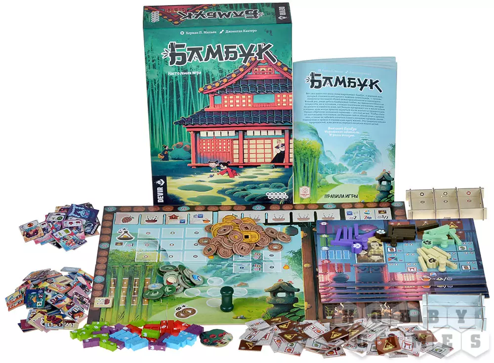 В настольной игре "Бамбук" участники берут под свой контроль одну из семей. На протяжении четырёх игровых лет им предстоит выращивать бамбук, готовить еду, следить за собственными финансами, сохранять гармонию в домах и многое другое. Всё это для того, чтобы набрать как можно больше очков счастья.