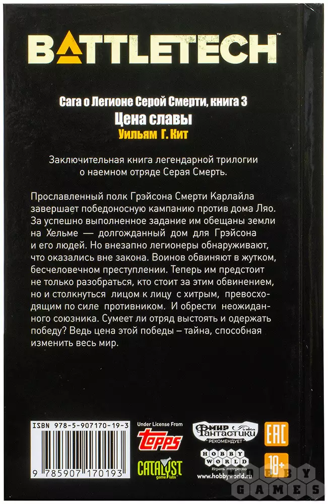 "Цена славы" (The Price of Glory) – третья книга Саги о Легионе Серой Смерти и четвёртый роман во вселенной BattleTech, написанный Уильямом Г. Китом-младшим в 1987 году. Вот уже 3 года наёмники Серого Легиона Смерти успешно выполняют контракты, а весь последний год заняты набегами на территории Дома Ляо. Но в конце военной кампании, вместо обещанной платы, Грэйсона Карлайла и его людей подставляют, обвинив в жестоком военном преступлении.