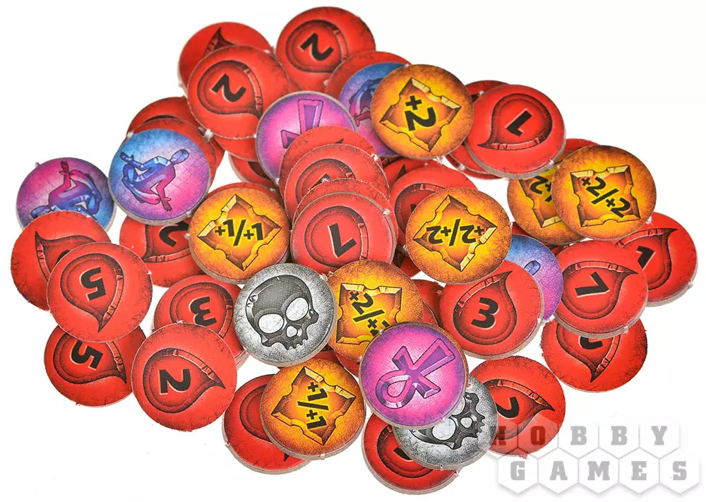 Размер карт: 63x88 мм (рекомендуются протекторы из данного раздела, 71 шт.)