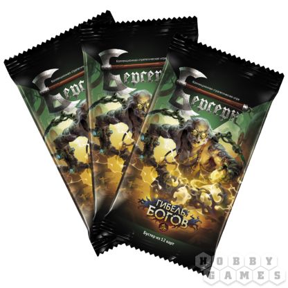 В дисплеях "Гибели богов" содержится 24 бустера по 12 карт каждый, из которых 1 бустер с фойловой ультраредкой картой, 3 бустера с ультраредкими картами, 6 бустеров с фойловыми редкими картами и 14 бустеров с редкими картами.