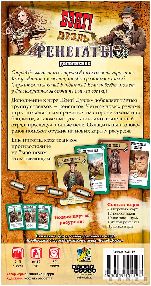 Внимание! Это дополнение. Для игры вам понадобится базовая версия "Бэнг! Дуэль".