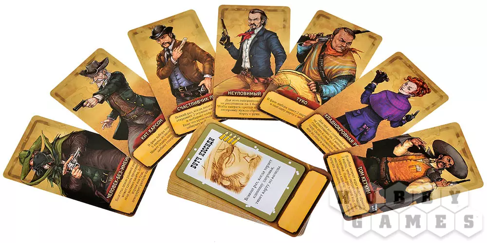 Все игроки оказываются на настоящем Диком Западе и случайным образом получают различные роли: вы можете стать Шерифом, его Помощником, Бандитом или даже Отступником. Затем идёт выбор персонажей, каждый из которых уникален своими способностями. Вся соль игры в том, что игрокам известен лишь Шериф, а вот остальные роли скрыты и остаётся только догадываться об истинных намерениях участников! Накаляет обстановку также и то, что у каждой роли свои условия победы: Шерифу нужно подстрелить всех бандитов и Отступника; бандитам – шерифа, но и друг друга они пострелять тоже не против; а Отступнику нужно просто остаться последним в живых. Различные действия совершаются за счёт простого розыгрыша карт: начиная с глотка пива для восстановления здоровья и заканчивая вызовом игрока на дуэль.