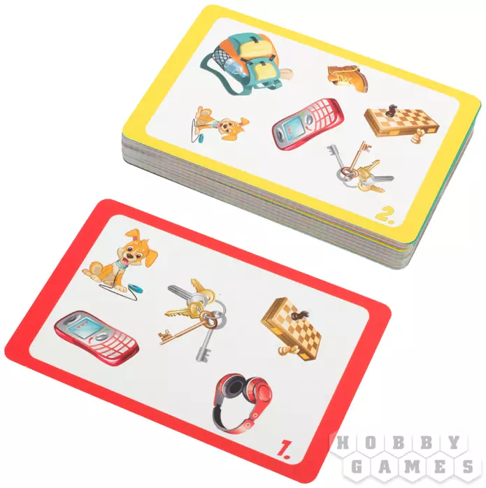 Перемешайте колоду и положите её лицевой стороной вверх. Затем все вместе внимательно изучите предметы на верхней карте – в среднем для этого хватает 10-20 секунд. Как только время закончится, переверните карту. Ваша задача – быстрее всех назвать новый предмет, который появился на обороте. Угадали верно? Забирайте карту в свою коллекцию! Ошиблись? Пропустите следующий ход. Для самых маленьких можно упростить правила, а для опытных игроков есть варианты "Наоборот" (где нужно искать не появившийся, а исчезнувший предмет) или "Всё серьёзно" (побеждает тот, кто соберёт карты с наибольшей суммой очков) – или их увлекательный микс.
