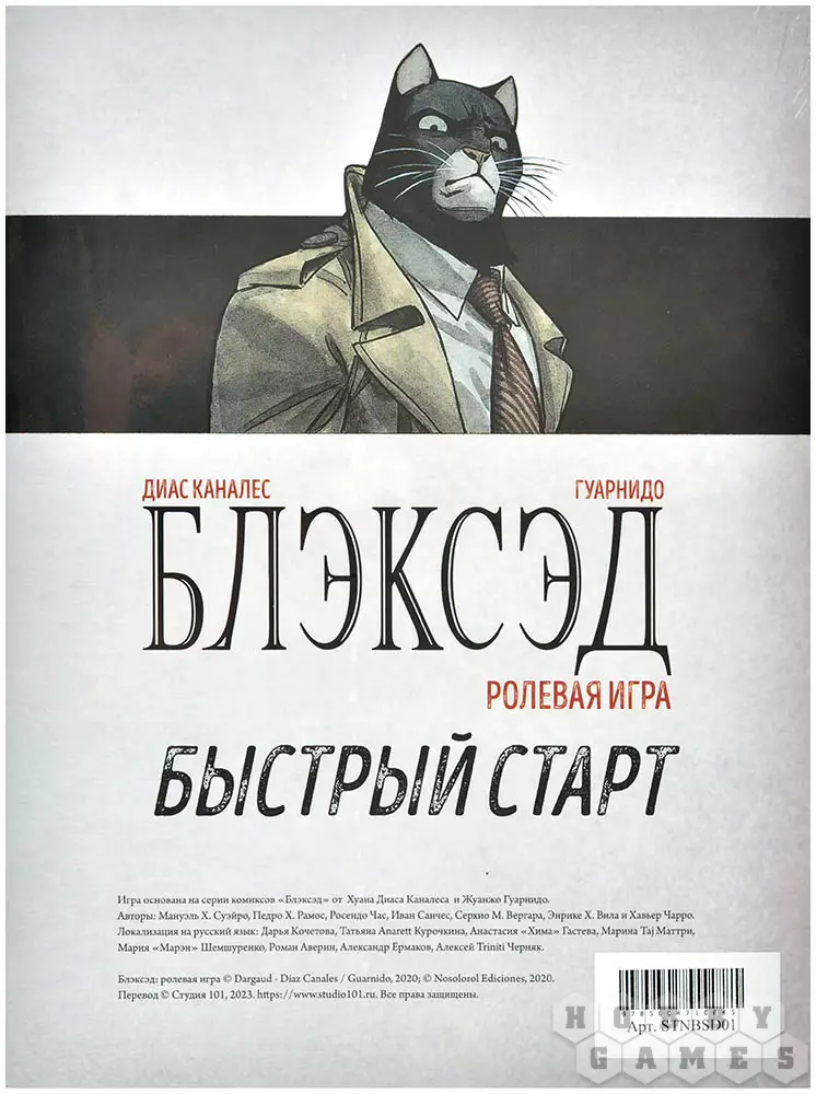 Благодаря издателям Nosolorol Ediciones перед вами настольная ролевая игра, вдохновлённая комиксами "Блэксэд", не так давно заполучившими саму премию Айснера. Сочетание нуарных иллюстраций мегаполиса, продуманная система правил, подробные примеры и множество рекомендаций, помогут вам сотворить свою собственную детективную историю. В "Быстром старте" содержится немалая часть важной информации: