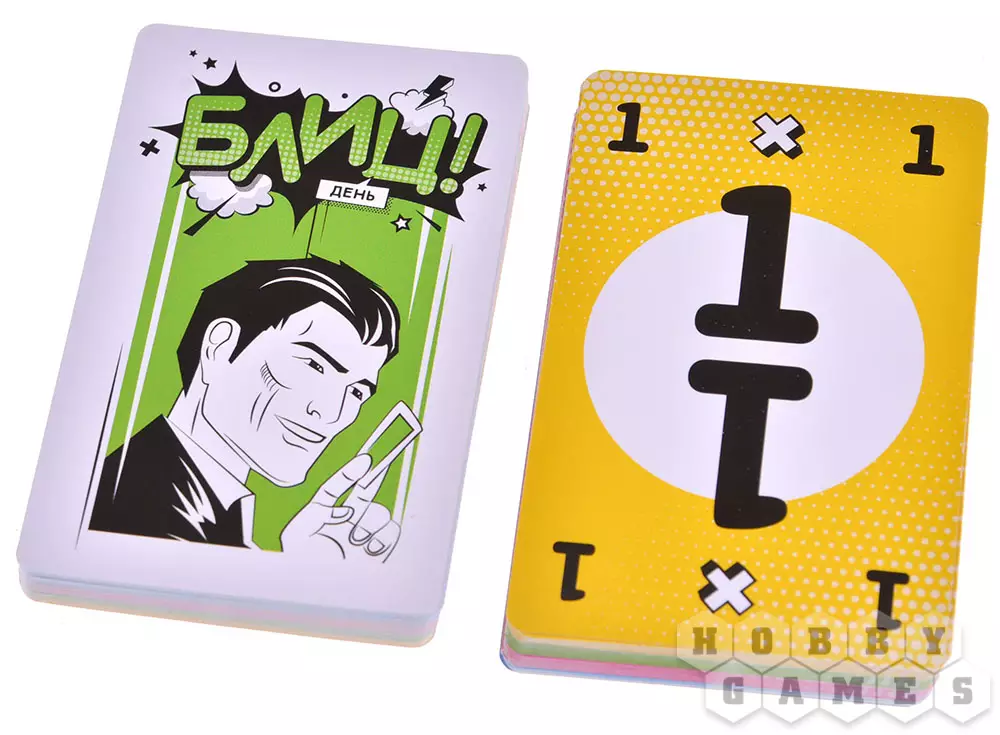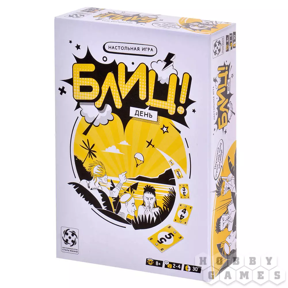 "Блиц: День" – это динамичная настольная игра для компании до 4 человек. Каждому игроку достаётся персональная колода, карты из которой он будет выкладывать в реальном времени: в "Блице" нет очерёдности ходов, все играют одновременно!