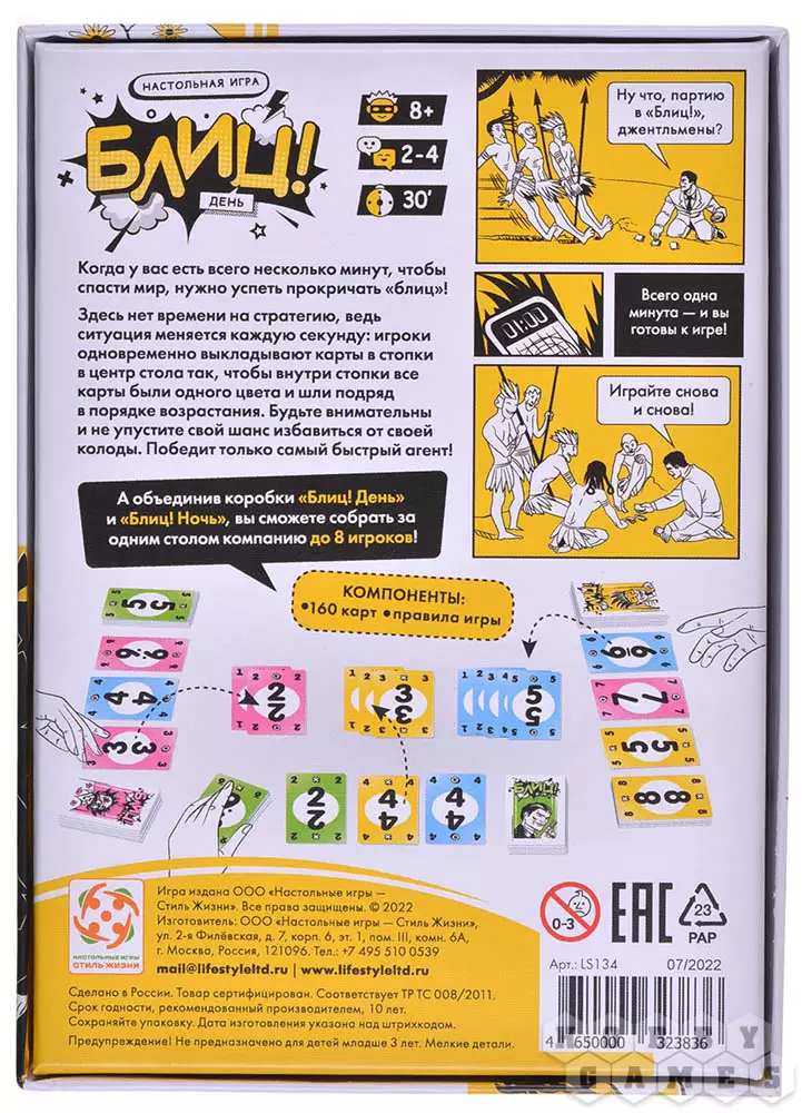 Объединив эту коробку с коробкой "Блиц: Ночь", вы сможете играть большой компанией до 8 человек!