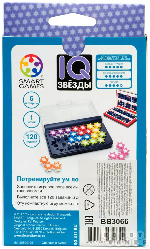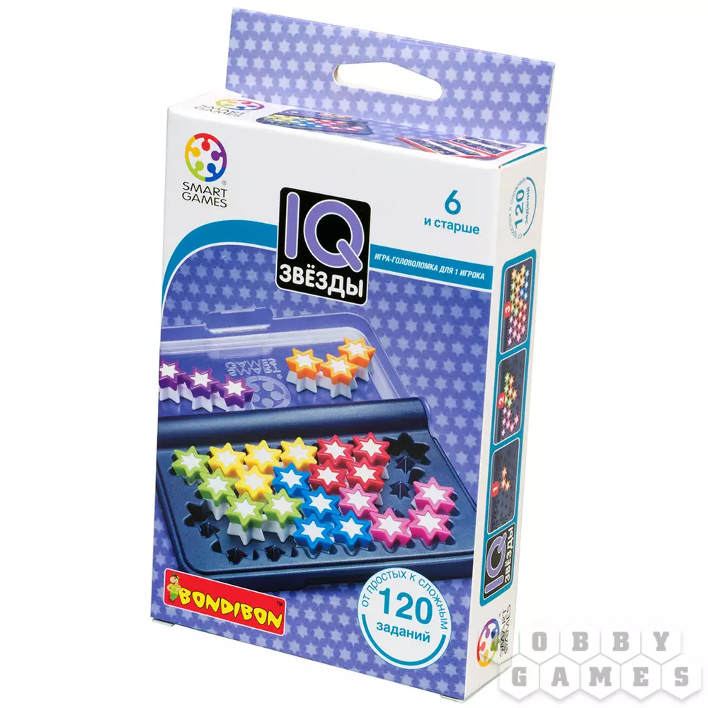 IQ-звёзды – новая компактная логическая игра, содержащая 120 заданий на сообразительность, распределённых по возрастанию уровня сложности.