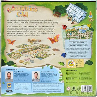 "Ботанический сад" – это красивая и стратегически насыщенная настольная игра, в которой вы станете изысканными коллекционерами, стремящимися создать самый изящный и необычный цветущий уголок. Соперничайте с другими садовниками, грамотно продумывая действия с помощью инновационной механики. Покупайте семена редких растений, ухаживайте за ростками и привлекайте в свои владения бабочек и колибри. Каждый ход формирует ваш неповторимый сад, а яркие компоненты делают игровой процесс по-настоящему атмосферным.