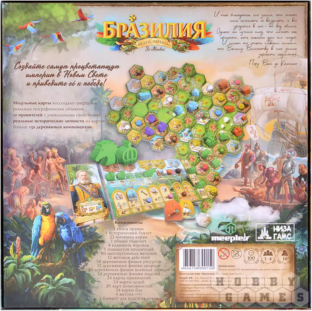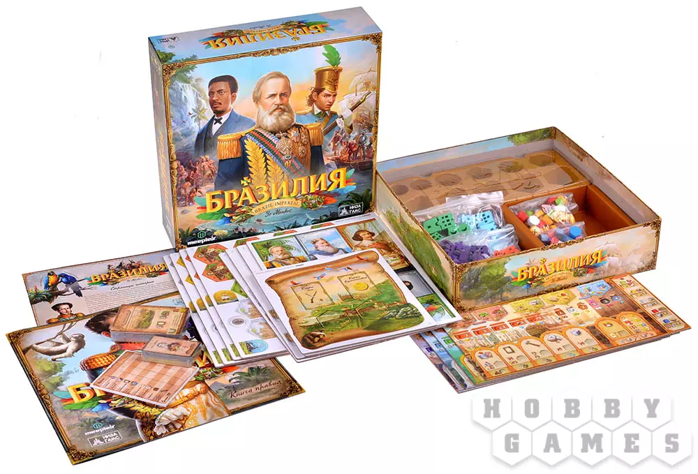 "Бразилия" – комплексная настольная стратегия, совмещающая характеристики евро-игр и жанра 4Х, к которому принадлежит легендарная компьютерная "Цивилизация". Практически каждый аспект игры отсылает к личностям, явлениям и событиям из бразильской истории, а потому среди игровых персонажей вы найдёте основателя Бразильской империи Педру I, португальского короля Мануэла I и даже таких легендарных деятелей, как королева Виктория и Наполеон Бонапарт. Каждая партия – это практически экскурс в историю: создатели даже включили в состав объёмную историческую справку, из которой вы узнаете обо всех личностях, упомянутых в игре.