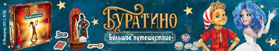 Используйте находчивость и особые жетоны, чтобы получить преимущество в игре, избежать ловушек и помочь товарищам. Самое главное – не подпускайте близко злого Карабаса... Если ваша фишка остановилась на клетке Карабаса – берегитесь! Злобный кукловод сразу же бросается в погоню. И если он обгонит вашего героя – вам придётся расстаться с одной монеткой.