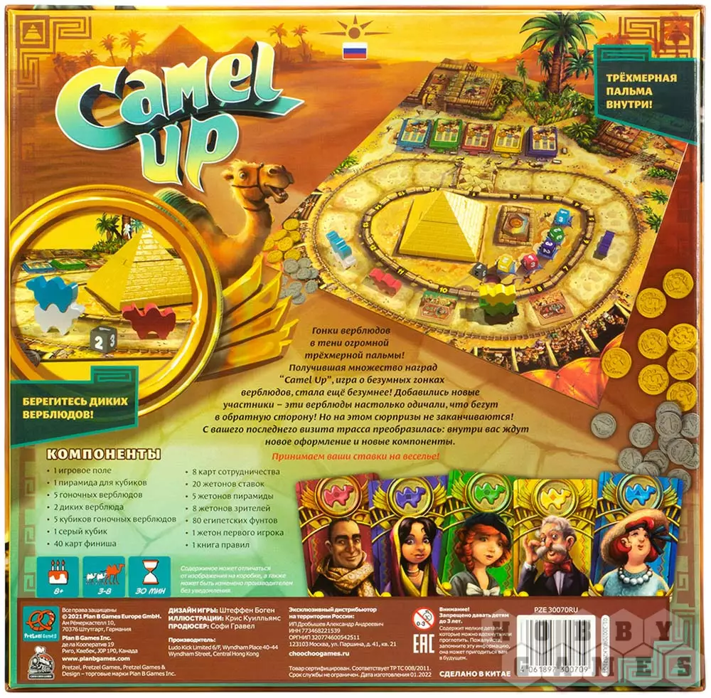Camel Up – это хаотичная, но захватывающая игра для компании от 3 до 8 человек, которая займёт не так много времени, но принесёт кучу веселья!