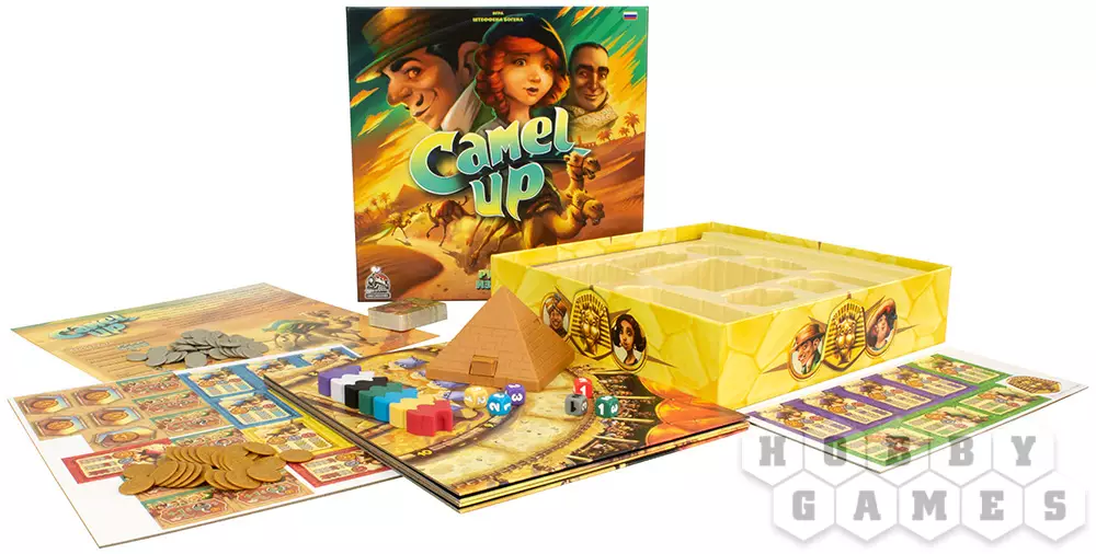 Настольная игра Camel Up – это весёлая, безумная и полная сюрпризов гонка! Игроки выступают в качестве зрителей на забеге верблюдов, в ходе которой им предстоит делать всё новые и новые ставки в зависимости от ситуации на поле. Безусловно, можно сделать один единственный выбор в пользу любимчика и до последнего за него топить. Но так ли вы удачливы? Все игроки, начиная с первого, по очереди могут выполнить одно из четырёх доступных действий: