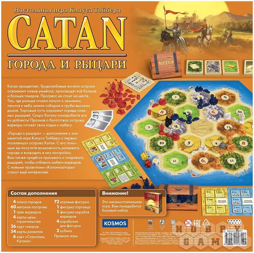 “Города и рыцари” – это масштабное дополнение к популярной игре “Catan. Колонизаторы”. Игроков ждёт новая механика строительства городов, возведение построек. Кроме этого игрокам придется призвать рыцарей к борьбе против вероломных варваров. Откройте свою “Catan. Колонизаторы” по-новому!