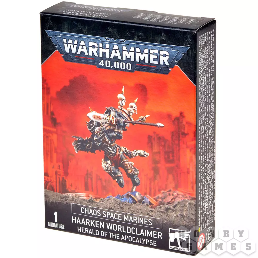 Хааркен Покоритель Миров (Haarken Worldclaimer) – чудовище, наслаждающееся своей ролью возвещающего погибель планет герольда Абаддона. Заезженные угрозы и банальное хвастовство – удел низших созданий, он же несёт тёмные вести, пронзая демоническим копьём Хель (Helspear) сердца и бегущих в страхе горожан, и тщетно пытающихся его остановить солдат. Он – воплощённое знамение рока, предвестник неотвратимой погибели и пришествия самого магистра войны.