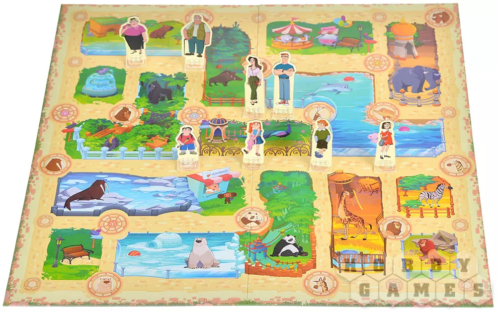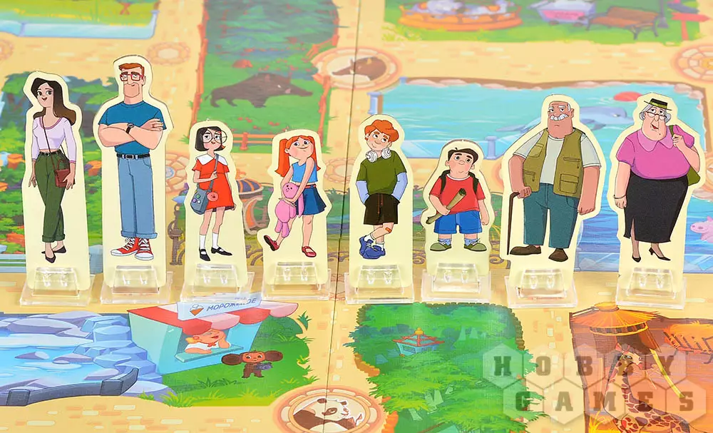 "Чебурашка: Зоопарк" – лёгкая и динамичная игра-бродилка для детей, которая перенесёт вас в мир доброго мультфильма. Игроки выбирают одного из восьми персонажей и отправляются исследовать зоопарк, посещая разнообразных животных. Ваша задача – быстрее всех находить нужных зверей и делать их фотографии. Это не только увлекательно, но и полезно – игра развивает внимательность, пространственное мышление, учит счёту. Простые правила делают игру доступной даже для самых маленьких настольщиков, а яркое оформление и объёмные фигурки добавляют ей очарования!