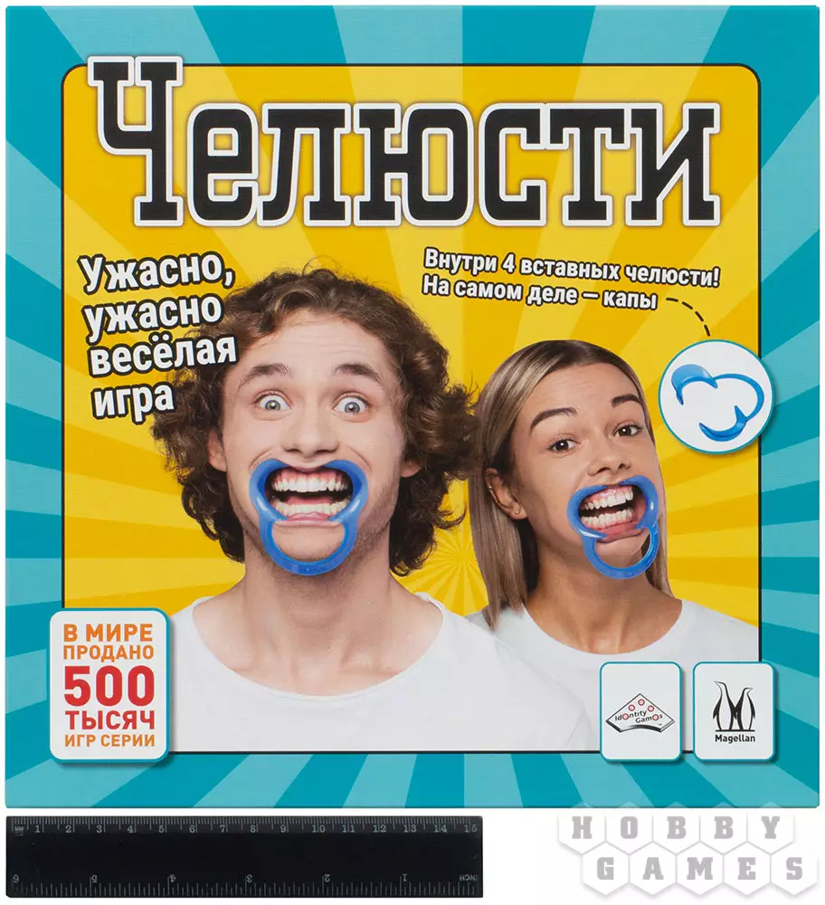 В весёлой настольной игре "Челюсти" вам предстоит выполнять различные задания, например, произнести какую-либо фразу, съесть банан, выпить стакан воды или объяснить словосочетание, но всё усложняется тем, что во рту у игроков размещаются специальные пластиковые капы. И вот здесь и начинается самое интересное, потому что сделать всё это, кажущееся на первый взгляд простым, будет очень и очень непросто! Карты с заданиями отличаются по цвету, который указывает на особенность выполнения заданий, а также на получение победных очков. Также в игре присутствуют карты "Реванш", которые можно использовать в том случае, если в дуэльном "красном" задании не получилось одержать верх. Такая карта даёт возможность повторить испытание.