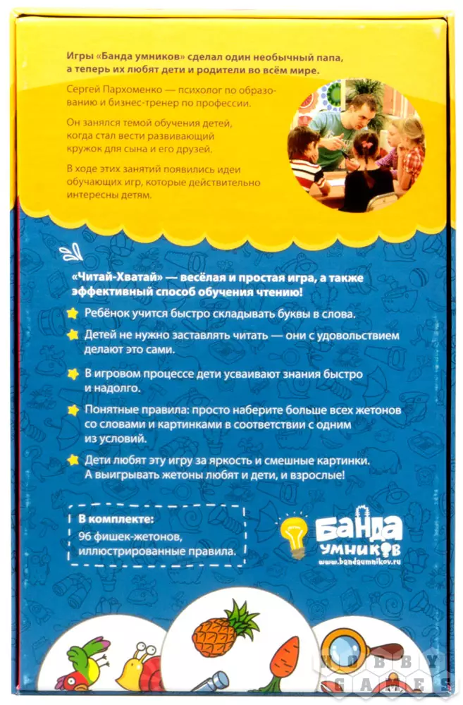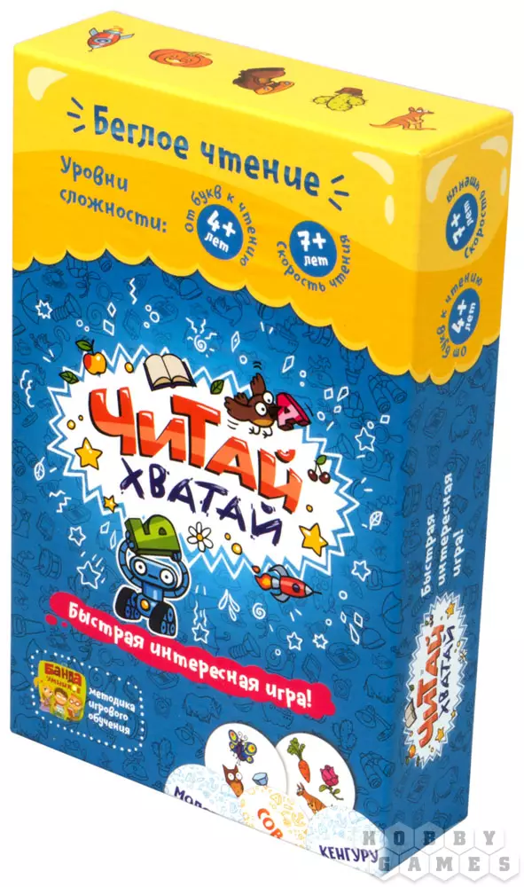 Просто знать буквы – это ещё не значит уметь читать! В "Читай-хватай" дети быстро и с удовольствием научатся складывать из букв слова: кто быстрее читает – тот больше собирает. Игра устроена так, что игровой процесс автоматически стимулирует детей читать и повышать скорость чтения.