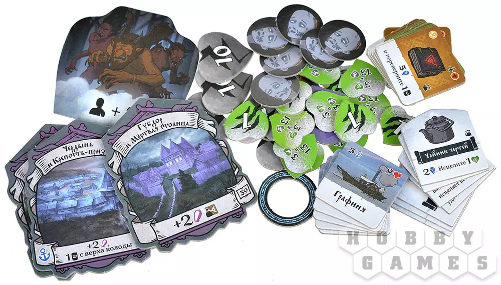 Также в дополнении вы найдёте карты проказней, новых персонажей, жетоны пароходов и двусторонний жетон сложности для тех, кто ищет настоящий вызов. Погрузитесь в мрачный фольклор Прикамья с совершенно новыми игровыми возможностями!