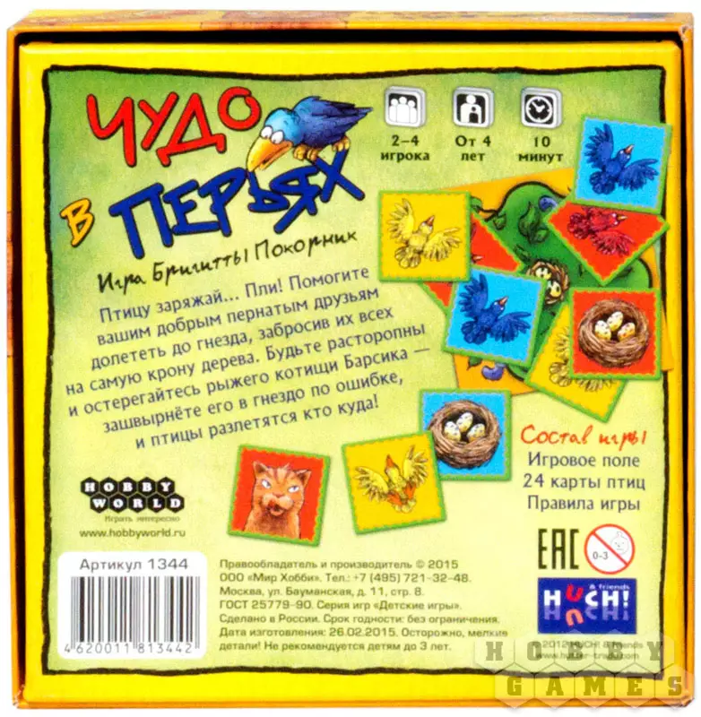 Настольная игра "Чудо в перьях" — это озорная детская игра для 2-4 игроков, в которой вам в прямом смысле придётся забрасывать птиц на крону дерева. С помощью этой игры вы определите самого ловкого в вашей дружной компании, а простые правила и занимательный геймплей будут интересны и понятны не только детям от четырёх лет, но и их родителям!