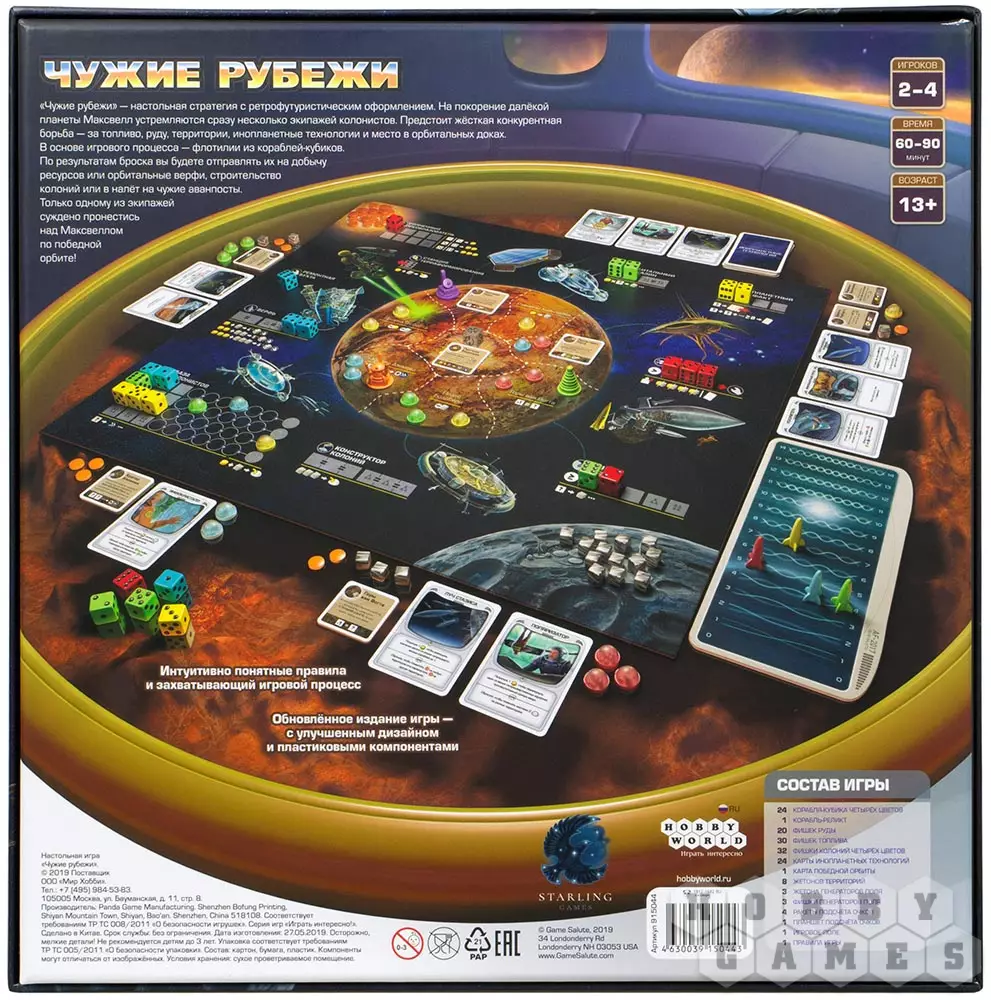"Чужие рубежи" – это экономическая игра про грамотное управление ресурсами в научно-фантастическом сеттинге, действие которой происходит в далёкой галактике, где недавно открыли новую планету. Игра достаточно проста в базовых механиках, но очень глубока по своим возможностям, каждый игрок по-своему раскроет её потенциал.