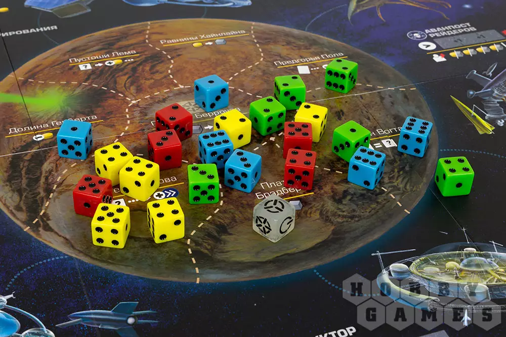 Одна из основных фишек игры – кубы-корабли. Обычные шестигранники здесь одновременно выполняют и роль кораблей, которые нужно отсылать на различные задания.