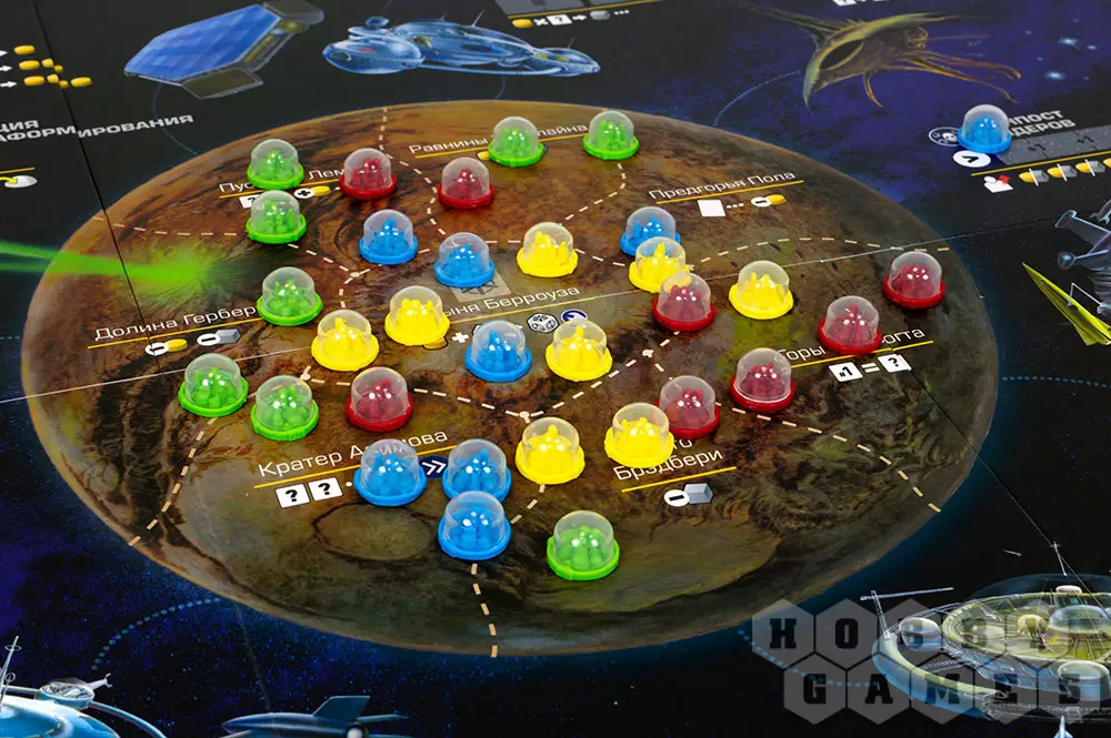 Орбитальный магазин – позволяет обменивать солнечную энергию на руду по курсу, который зависит от результатов кораблей. В любом случае, вам понадобится пара одинаковых кубов