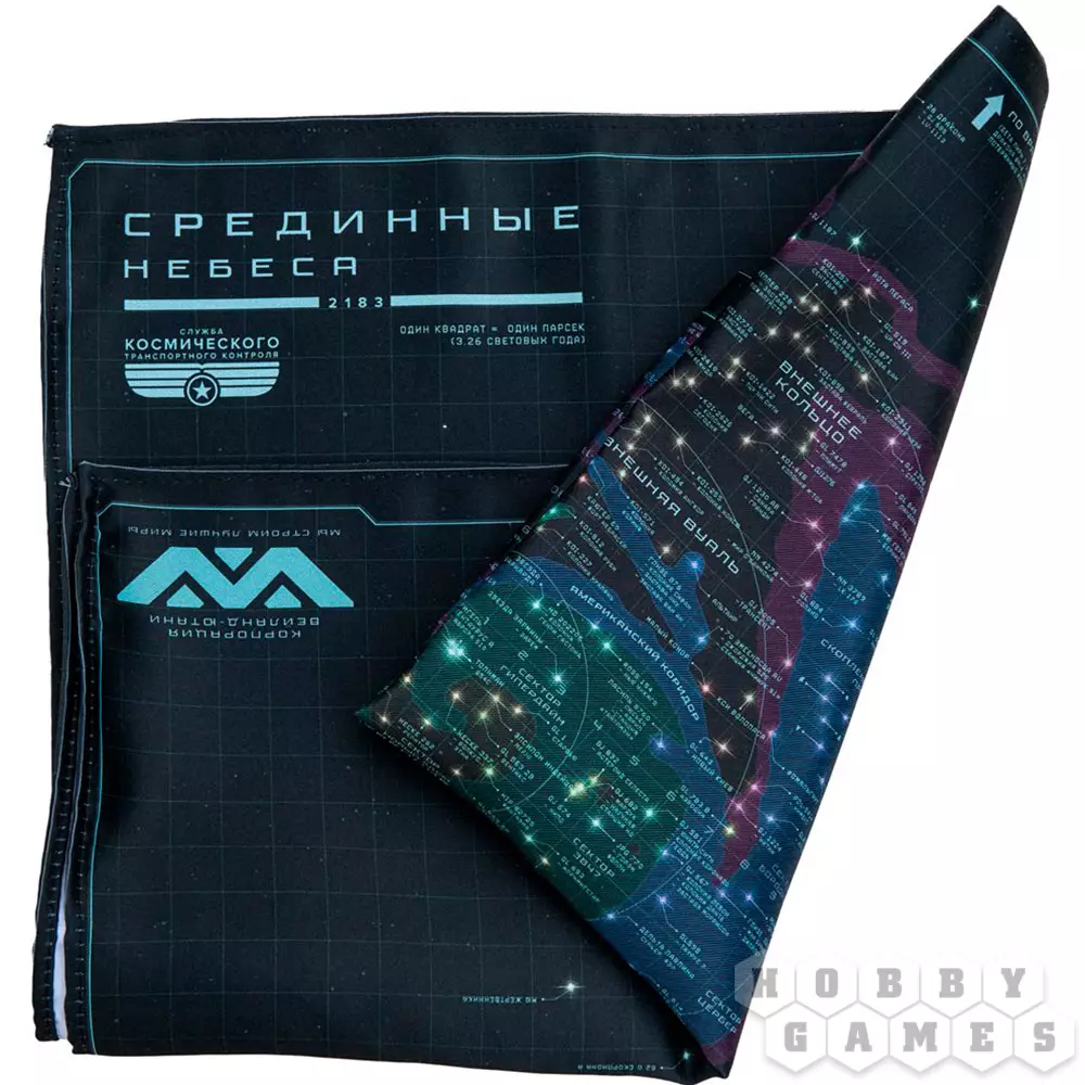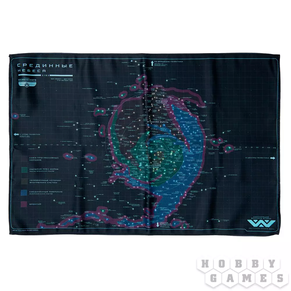 Служба космического транспортного контроля представляет вашему вниманию полноцветную карту Срединных Небес. Эта высококачественная карта звёздного скопления вселенной "Чужих" обладает высокими водостойкими свойствами, не выгорает на солнце, сохраняет яркость печати и станет отличным подспорьем для звёздных путешественников.