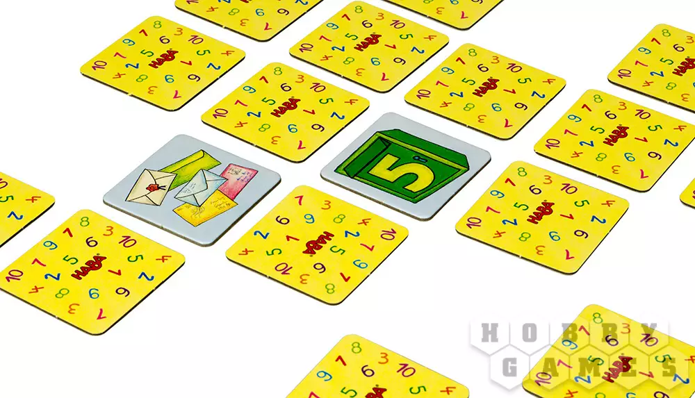 Игровые жетоны выкладываются лицом вниз таким образом, чтобы получился квадрат 5х5. В игре есть три типа жетонов: это цифровые жетоны, жетоны с определённым количеством предметов на них, и жетоны Цифрозаврика. Игрокам необходимо открывать жетоны и проверять, получилась ли у них пара. Парой являются жетоны предметов и чисел, например, на одном жетоне изображена цифра "7", а на другом семь цветных карандашей. Ребёнку необходимо знать цифры и уметь считать предметы на жетонах, чтобы сопоставить их.