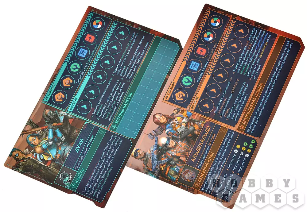 Каждое из них отмечено собственным диском на планшете вашей банды, они выполняются строго друг за другом – последовательность действий важна, иначе в даже в собственной банде может начаться хаос. После выполнения действия его диск сдвигается в зону "возврат" – оно недоступно до тех пор, пока вы не выполните этот самый возврат.
