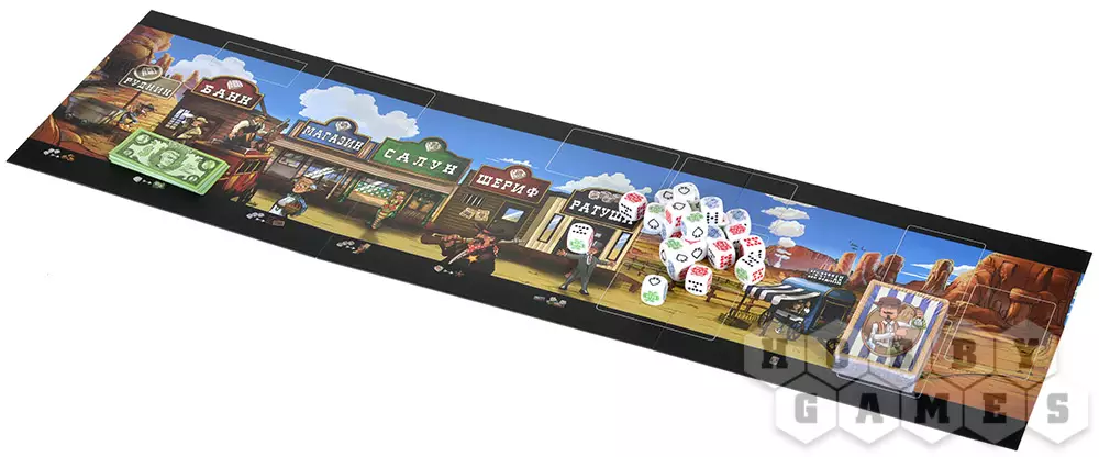 Если вы любите веселиться, то эта игра не разочарует вас. Она насыщена различными тактиками и стратегиями, которые создают непредсказуемые игровые ситуации между игроками. Возьмите на себя роль профессионального вора и украдите ценные карты у соперников. Или отправляйтесь на поиски золотых самородков, чтобы стать настоящим богачом. Попались Шерифу? Да, в таком случае придётся распрощаться с парочкой золотых монет... Но не отчаивайтесь, ведь для статуса самого главного ковбоя вам нужно набрать как можно больше победных очков!