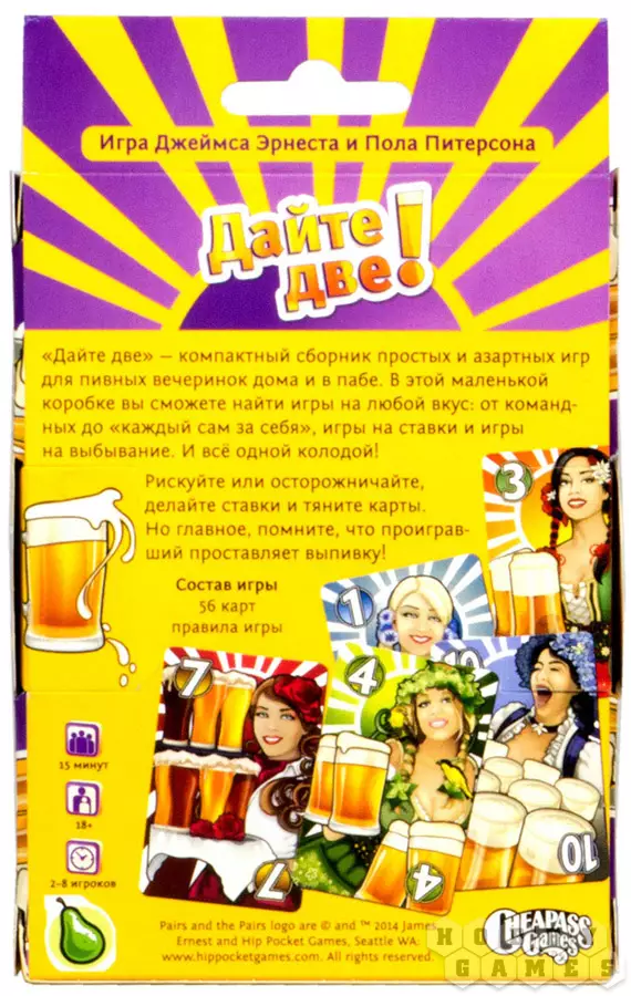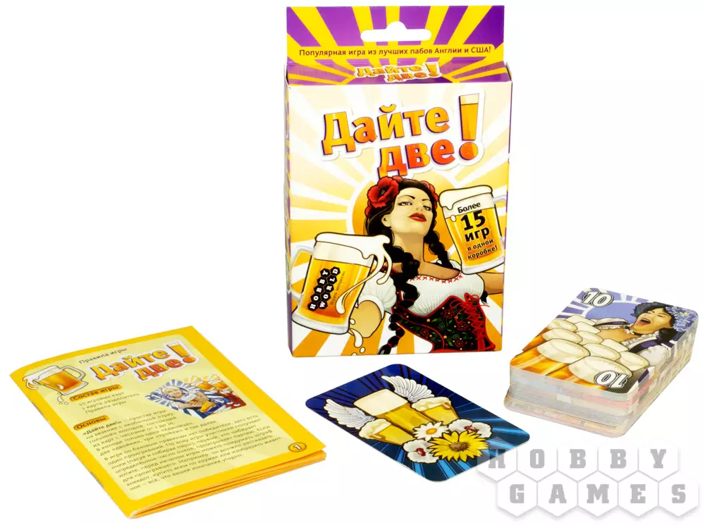 Зато сама настольная игра «Дайте две» никак не вредит, а наоборот, скрасит ваш досуг, разовьёт навыки и принесёт море веселья! Мы рекомендуем играть без употребления алкогольной продукции.
