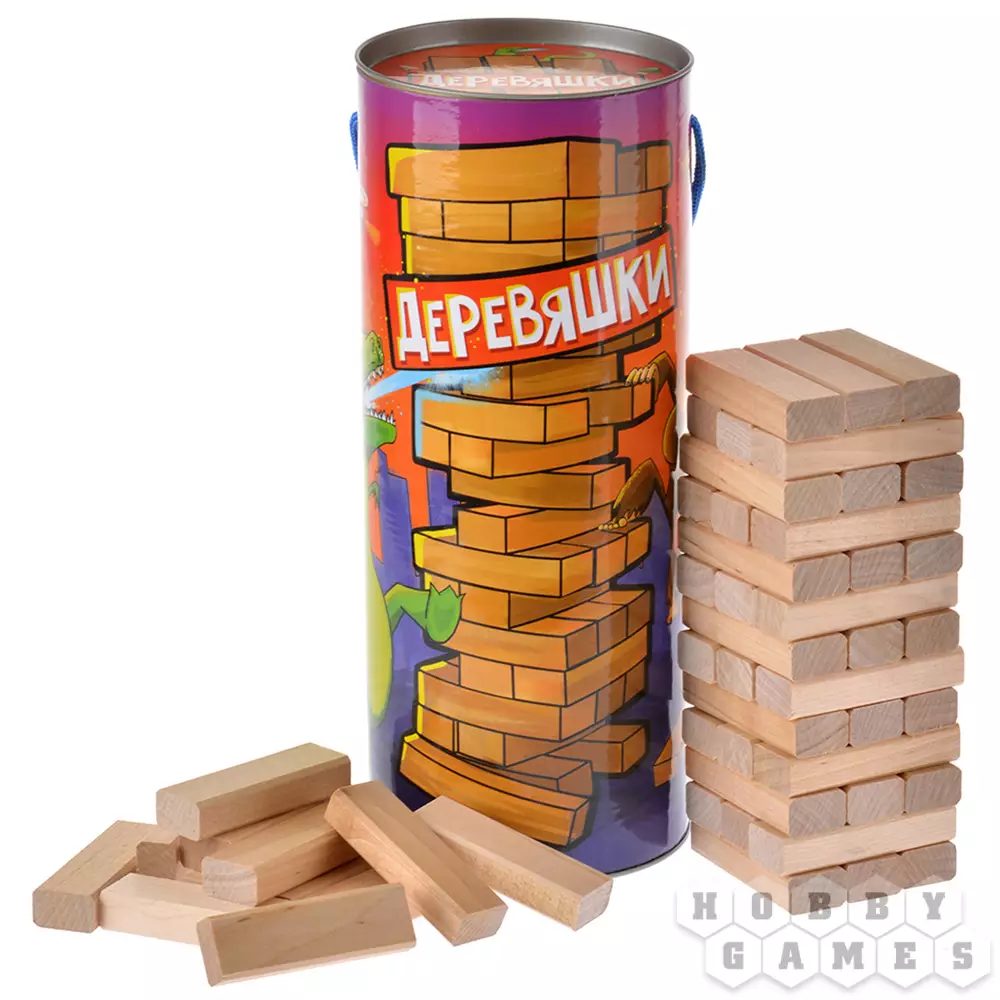"Деревяшки" – это весёлая и простая игра, правила которой легко освоить за минуту, а играть в неё можно практически в любой компании. Аккуратно вытаскивать деревянные брусочки из многоэтажной конструкции, стараясь, чтобы она не развалилась, весело как в уютной семейной атмосфере, так и на лихой дружеской вечеринке. Азарту могут добавить и самостоятельно добавленные правила – например, можно тащить бруски только левой (а левшам – правой) рукой, или выпивать по рюмке после каждого успешного хода. Играть в "Деревяшки" можно практически любым составом – двух человек уже достаточно, а в больших компаниях драйва ещё больше. Скорее собирайте игроков и вперёд – но осторожнее, ведь башня легко может рухнуть!