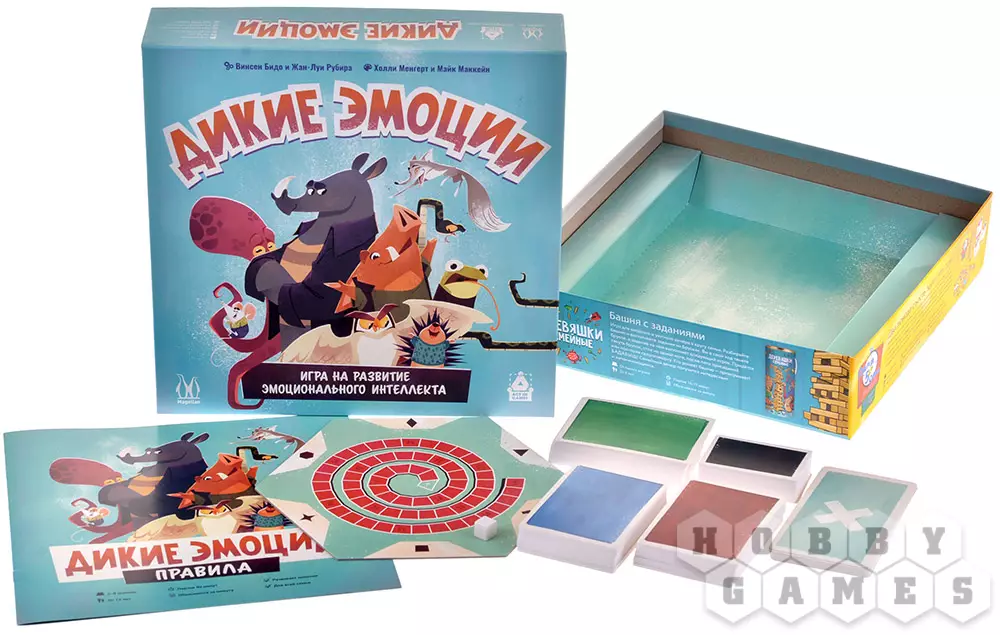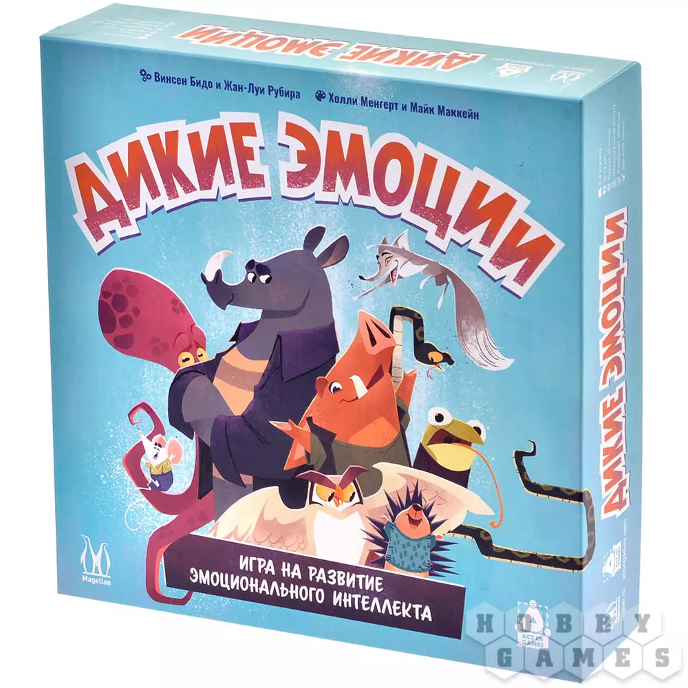 "Дикие эмоции" – локализация семейной настольной игры Feelinks. Простые правила и дружелюбный дизайн карт помогут игрокам чувствовать себя комфортно, а тщательно подобранные темы вопросов позволяют использовать игру и как средство для развития эмоционального интеллекта у детей, и как инструмент для подросткового психолога, и просто как настольную игру на ассоциации.