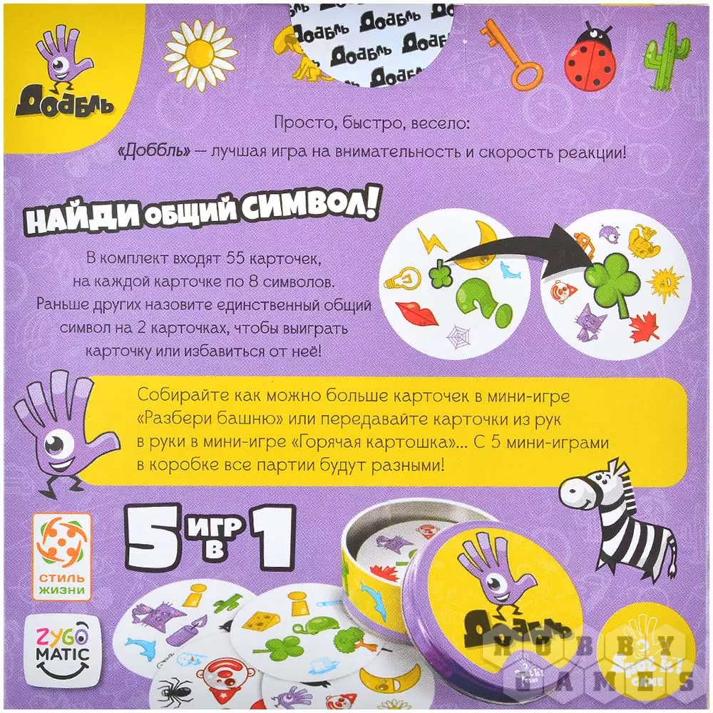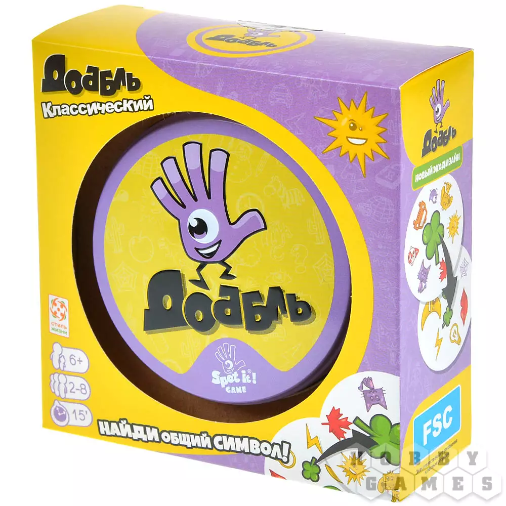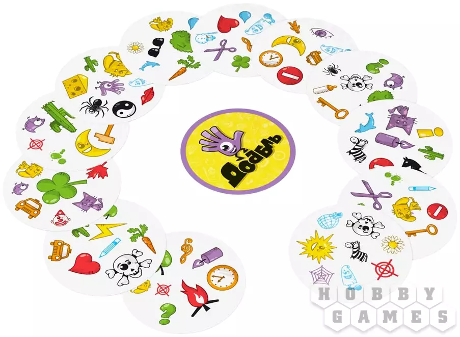 Доббль – это динамичная и увлекательная игра, где вам предстоит проявить наблюдательность и скорость реакции. У вас будет ряд карточек с изображениями – и несмотря на внушительное количество этих карточек, их можно поделить на пары, которые всегда объединяет всего один общий символ. Найти его первым – задача, которая не даст заскучать!
