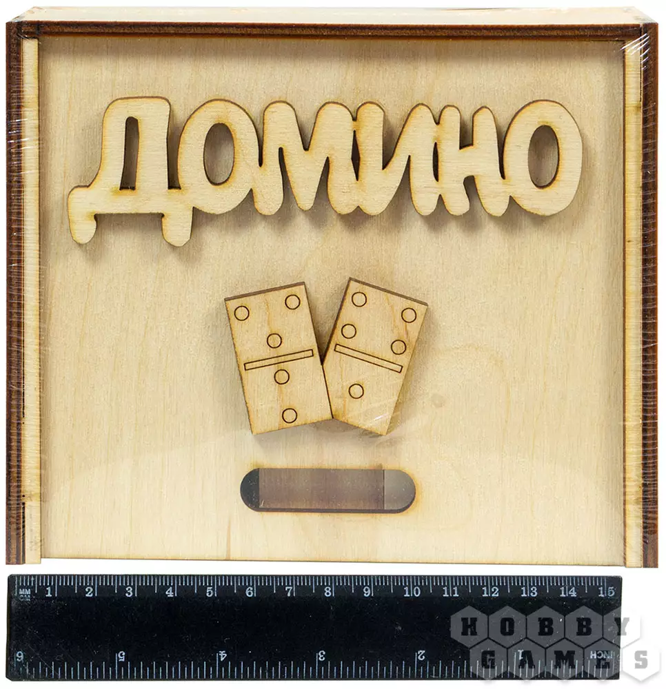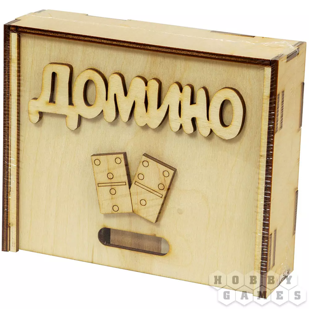 Домино в деревянной коробке содержит 28 деревянных фишек и станет оригинальным подарком любому ценителю классических настольных игр.