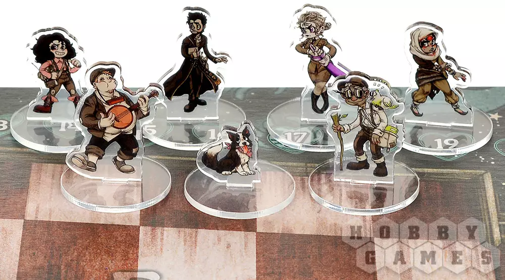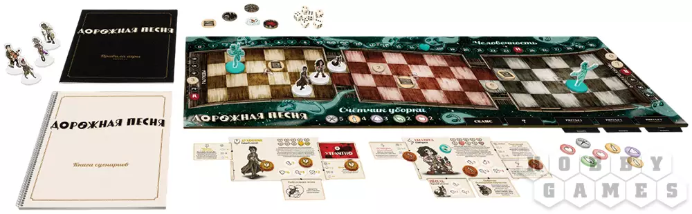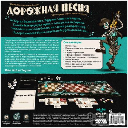 Перед тем как отправиться в путешествие, соберите своих бродяг – выберите их карты, поставьте фигурки на тёмное поле поезда и вручите каждому по три заветные монеты. Наполните старый узелок таинственными жетонами предметов – кто знает, что попадётся в дороге? Затем откройте книгу сценариев на первой истории – "Убежище от бури" – и расставьте призраков, объекты и жетоны событий так, как велит легенда.