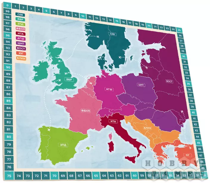 "Евротур" – это глубокая и атмосферная игра, где вы планируете своё путешествие по Европе от недели к неделе. Каждый ход – это выбор: потратить день на написание статьи для заработка, на отдых для восстановления энергии, на планирование будущих маршрутов или на выполнение особого задания с карты локации. Ключевая механика – управление ограниченным ресурсом времени (днями в календаре) и синхронизация ваших действий с днями недели, чтобы раскрывать специальные эффекты карт. Соревнование идёт не только за эффективность, но и за влияние в каждом из десяти регионов – именно там, где вы соберёте больше всего инсайдерских подсказок, вы получите дополнительные победные очки!