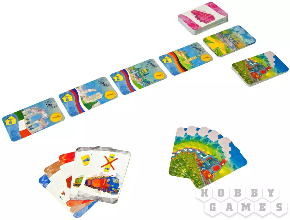 Карты вагонов и действий соединяются и тщательно перемешиваются. Каждый из игроков взакрытую получает по пять карт из образовавшейся колоды и не показывает их другим игрокам. Оставшиеся карты кладутся рубашкой вверх в центр стола. Колода городов также перемешивается, четыре верхние карты открываются и кладутся в центр стола, остальные карты рубашкой вверх размещаются около колоды вагонов и действий. Партия начинается. В свой ход игрок может совершить одно из четырёх действий: