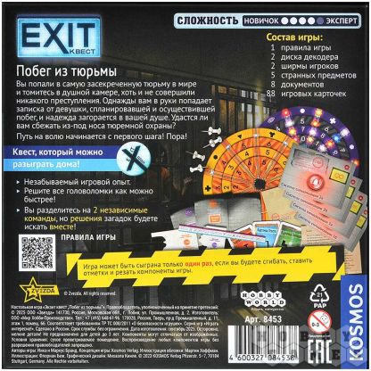 "EXIT-квест: Побег из тюрьмы" – это настольная квест-игра, которая привнесёт атмосферу напряжённого триллера за ваш стол. Всё в лучших традициях серии, но с уникальным нововведением: впервые вы разделитесь на две независимые команды, которые при этом будут работать на одно благое дело!